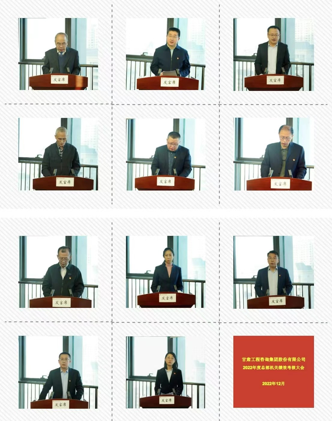 12月27日,甘肅工程咨詢(xún)集團(tuán)召開(kāi)2022年度總部機(jī)關(guān)績(jī)效考核大會(huì),按照新修訂的《機(jī)關(guān)績(jī)效考核管理辦法(試行)》,對(duì)各職能部門(mén)績(jī)效、職能部門(mén)正副職崗位績(jī)效進(jìn)行考核,同時(shí)對(duì)職能部門(mén)正副職進(jìn)行年度政治素質(zhì)考察專(zhuān)項(xiàng)測(cè)評(píng)。黨委書(shū)記、董事長(zhǎng)馬明主持并講話(huà)。