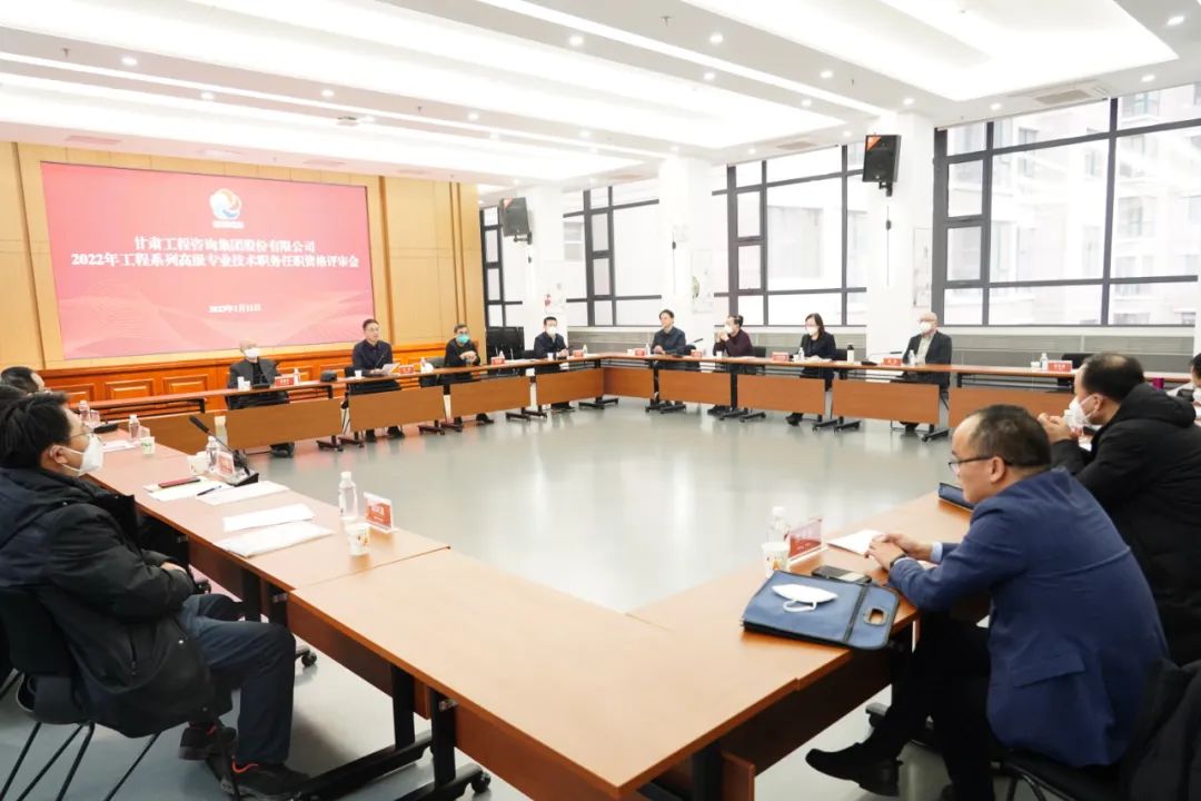 1月11日,甘肅工程咨詢集團在建筑設計院召開2022年度工程系列高級專業技術職務任職資格答辯測評及評審會議(代評中級),黨委書記、董事長馬明主持。