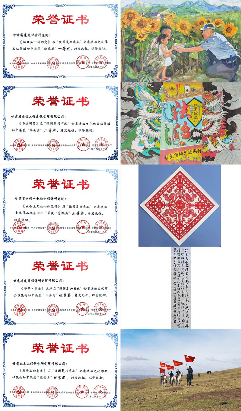 經(jīng)評(píng)選,集團(tuán)多件作品脫穎而出。省建筑設(shè)計(jì)院的《向日葵下的約定》以細(xì)膩筆觸和獨(dú)特視角,獲繪畫(huà)類(lèi)一等獎(jiǎng);省交通監(jiān)理公司的《與法同行》生動(dòng)展現(xiàn)法治守護(hù),獲繪畫(huà)類(lèi)二等獎(jiǎng);省水電設(shè)計(jì)院的《社會(huì)主義核心價(jià)值觀》以精湛剪紙技藝,獲剪紙類(lèi)三等獎(jiǎng);省建筑設(shè)計(jì)院的《〈管子·明法〉選抄》獲書(shū)法類(lèi)優(yōu)秀獎(jiǎng);甘肅土木工程院的《馬背上的普法》獲攝影類(lèi)優(yōu)秀獎(jiǎng)。