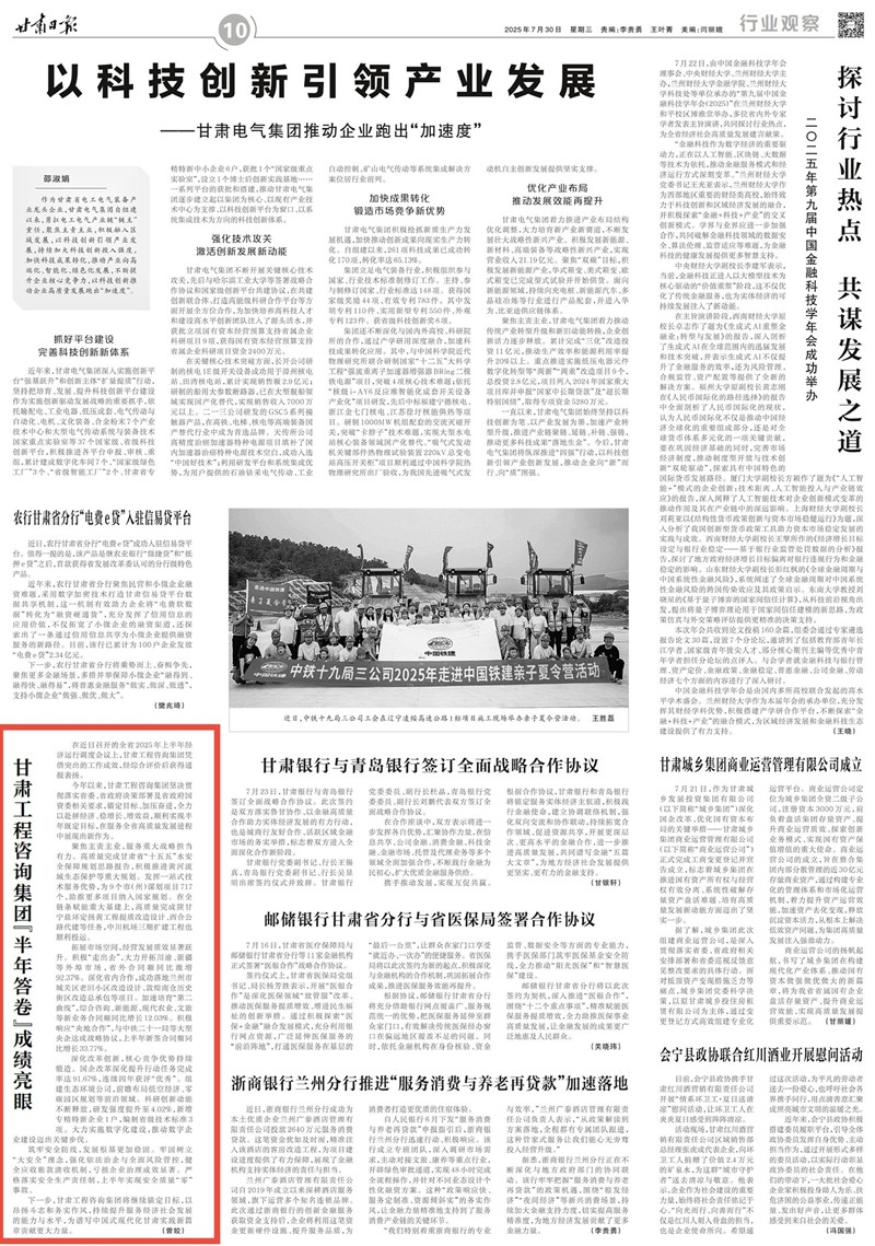 今年以來,甘肅工程咨詢集團(tuán)堅(jiān)決貫徹落實(shí)省委、省政府決策部署及省政府國資委相關(guān)要求,錨定目標(biāo)、加壓奮進(jìn),全力以赴拼經(jīng)濟(jì)、穩(wěn)增長、增效益,順利實(shí)現(xiàn)半年既定目標(biāo),在服務(wù)全省高質(zhì)量發(fā)展進(jìn)程中展現(xiàn)出新作為。