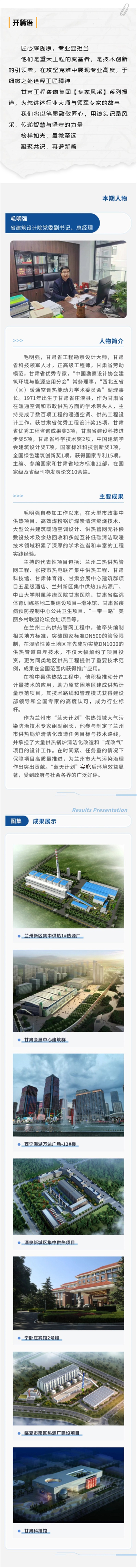 《專家風采》專題報道① | 甘肅省工程勘察設計大師毛明強:深耕熱能工程,引領綠色供熱,以創新技術守護碧水藍天