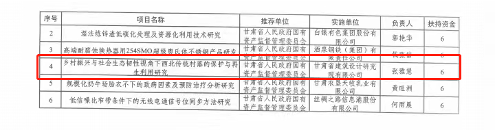 近期,省委組織部印發了《關于印發2023年度省級重點人才項目和隴原青年創新創業人才(團隊)項目入選名單的通知》(甘組通字〔2023〕20號),甘肅工程咨詢集團省建筑設計院張雅慧申報的《鄉村振興與社會生態韌性視角下西北傳統村落的保護與再生利用研究》入選個人項目名單,獲得6萬元經費資助。