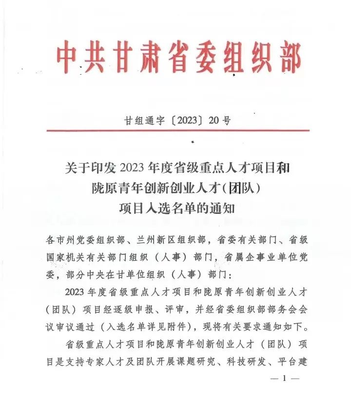 甘肅工程咨詢集團1項人才(個人)項目入選2023年度省級重點人才項目和隴原青年創新創業人才(團隊)項目