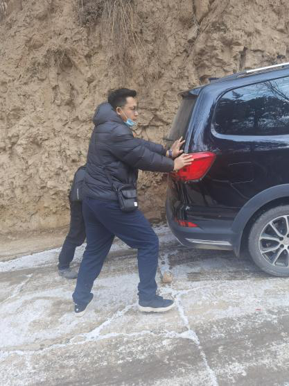 很多在隱患點上的行政村分布在舟曲縣周邊的大山高處,又逢舟曲剛下完大雪,山路崎嶇,道路積雪結(jié)冰,即使在車上套上防滑鏈還是無法到達(dá)一些村落。面對重重困難,工程師們沒有退縮,當(dāng)積雪太深或結(jié)冰地路面太滑,車輛完全無法通行時,他們或推車前行,或頂風(fēng)冒雪,深一腳淺一腳地步行好幾公里,走到開展工作的村子里去。