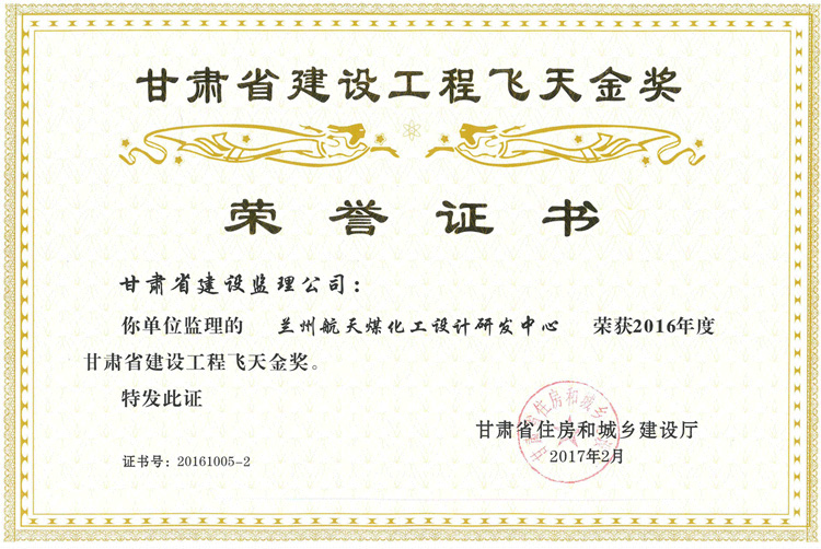 2016年度甘肅省建設工程飛天金獎